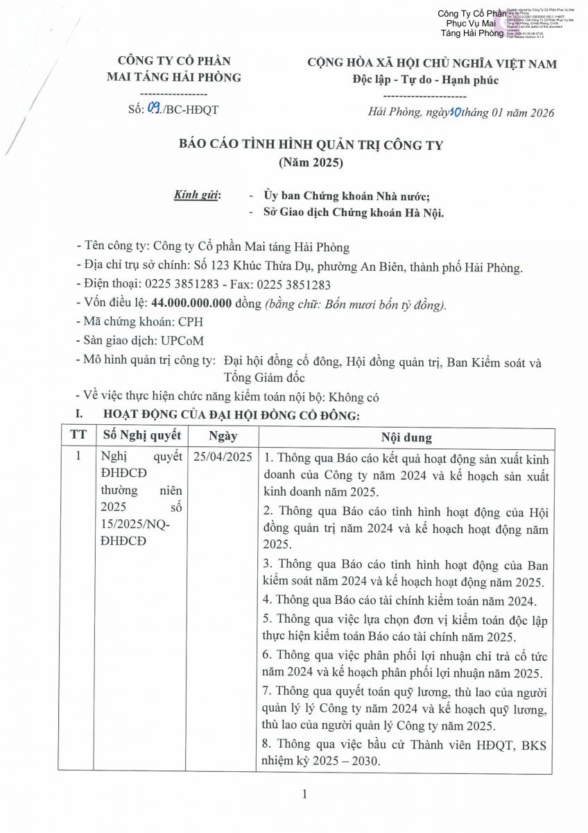 Báo cáo tình hình quản trị công ty năm 2025