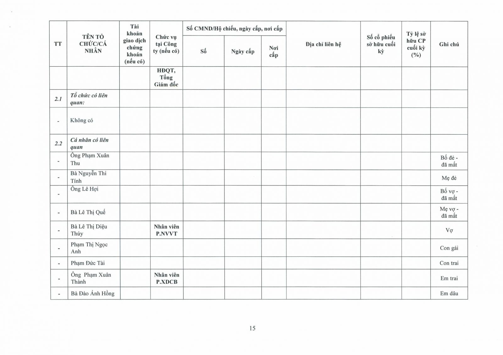 Thông tin cổ đông