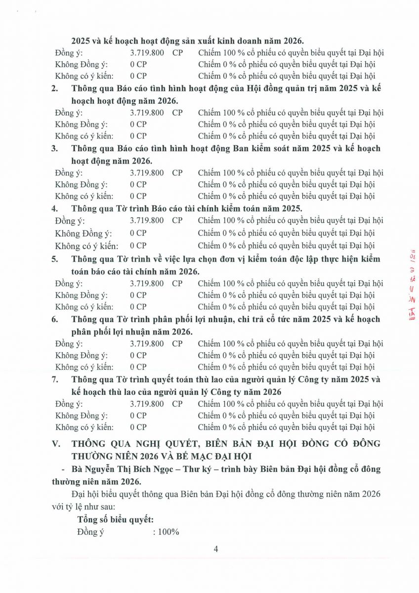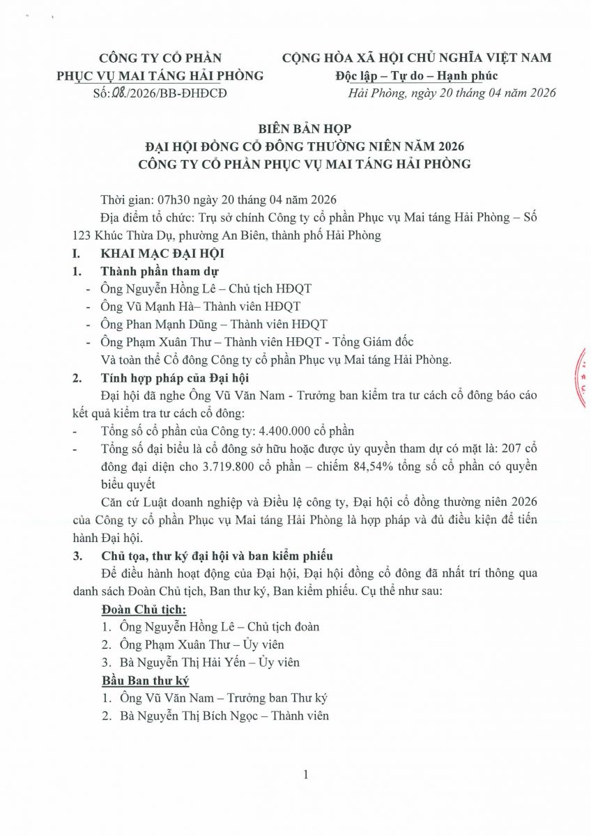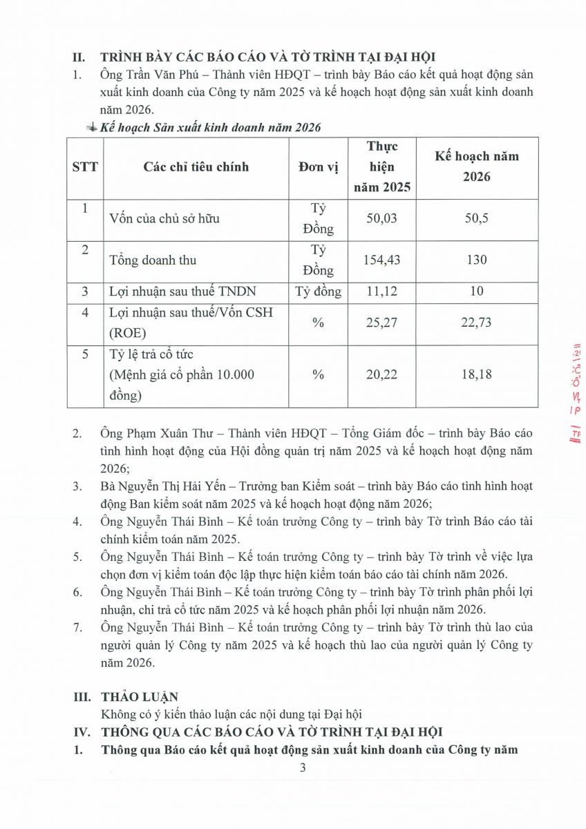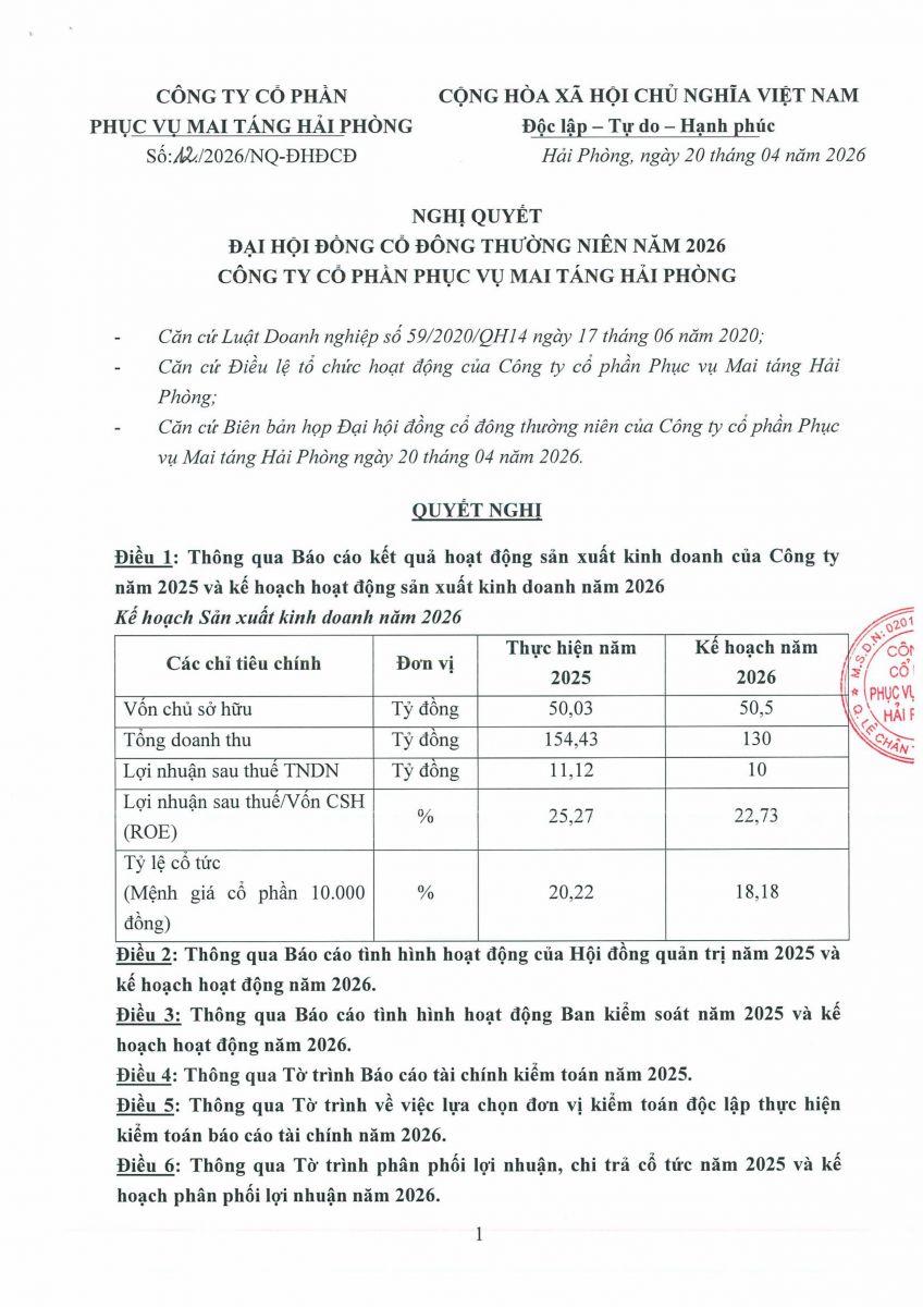 Biên bản, Nghị quyết họp ĐHĐCĐ thường niên năm 2026 và các tài liệu liên quan