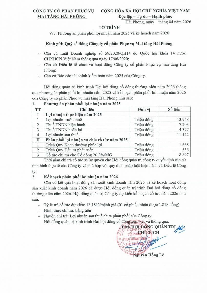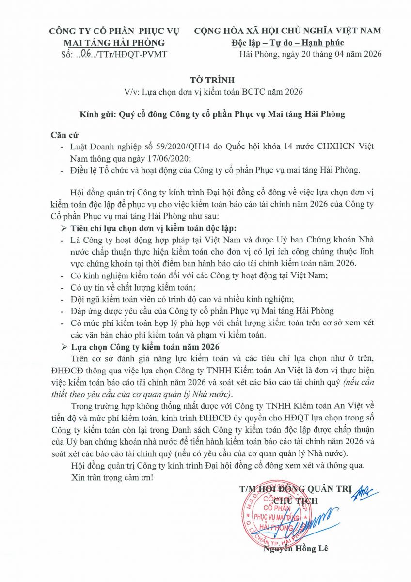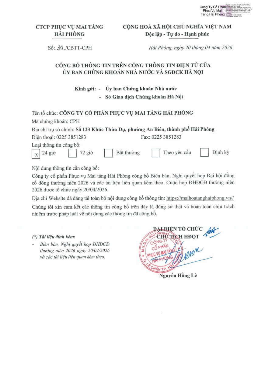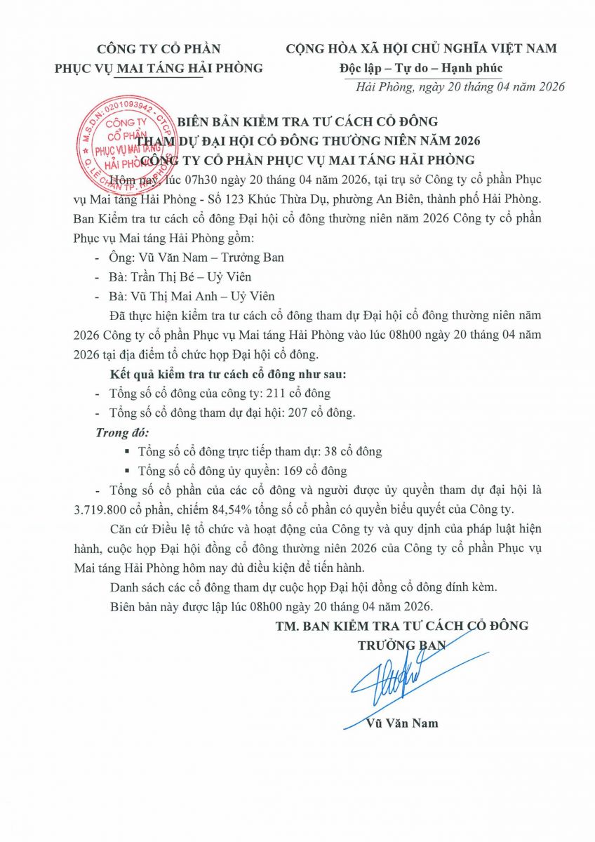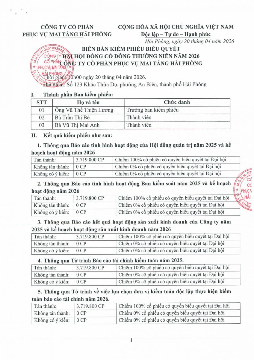 Biên bản, Nghị quyết họp ĐHĐCĐ thường niên năm 2026 và các tài liệu liên quan