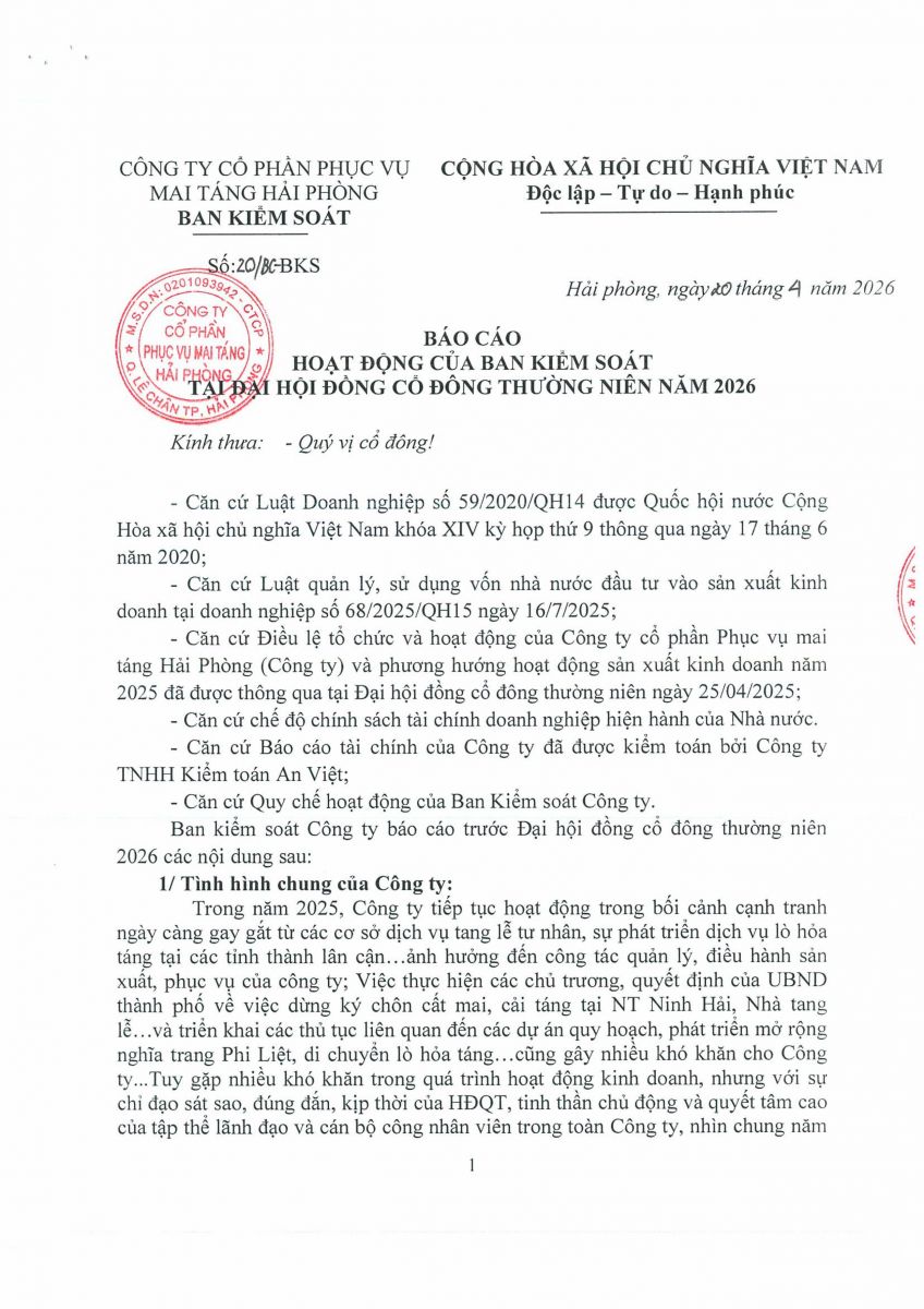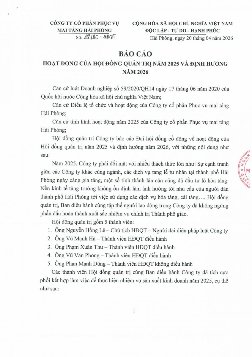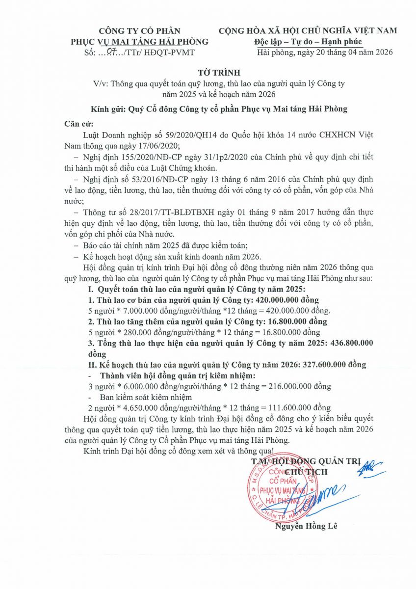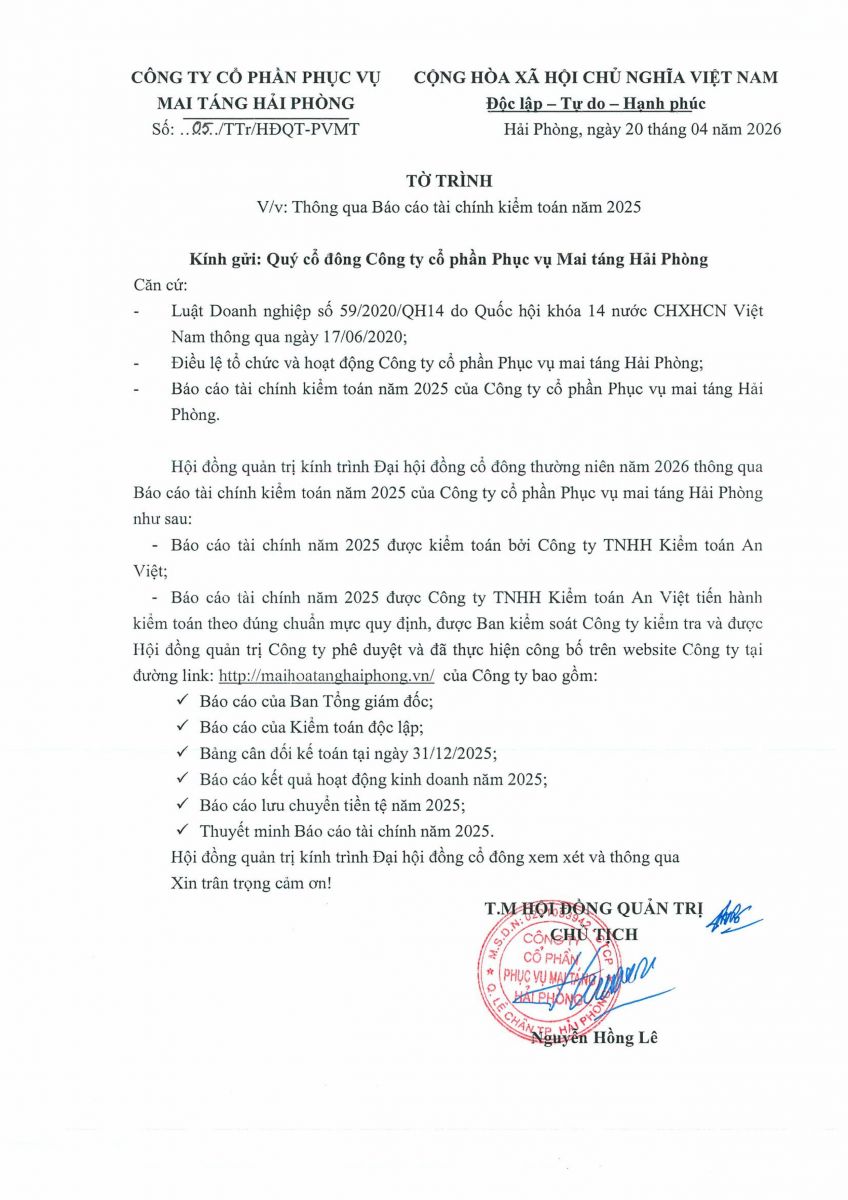 Biên bản, Nghị quyết họp ĐHĐCĐ thường niên năm 2026 và các tài liệu liên quan