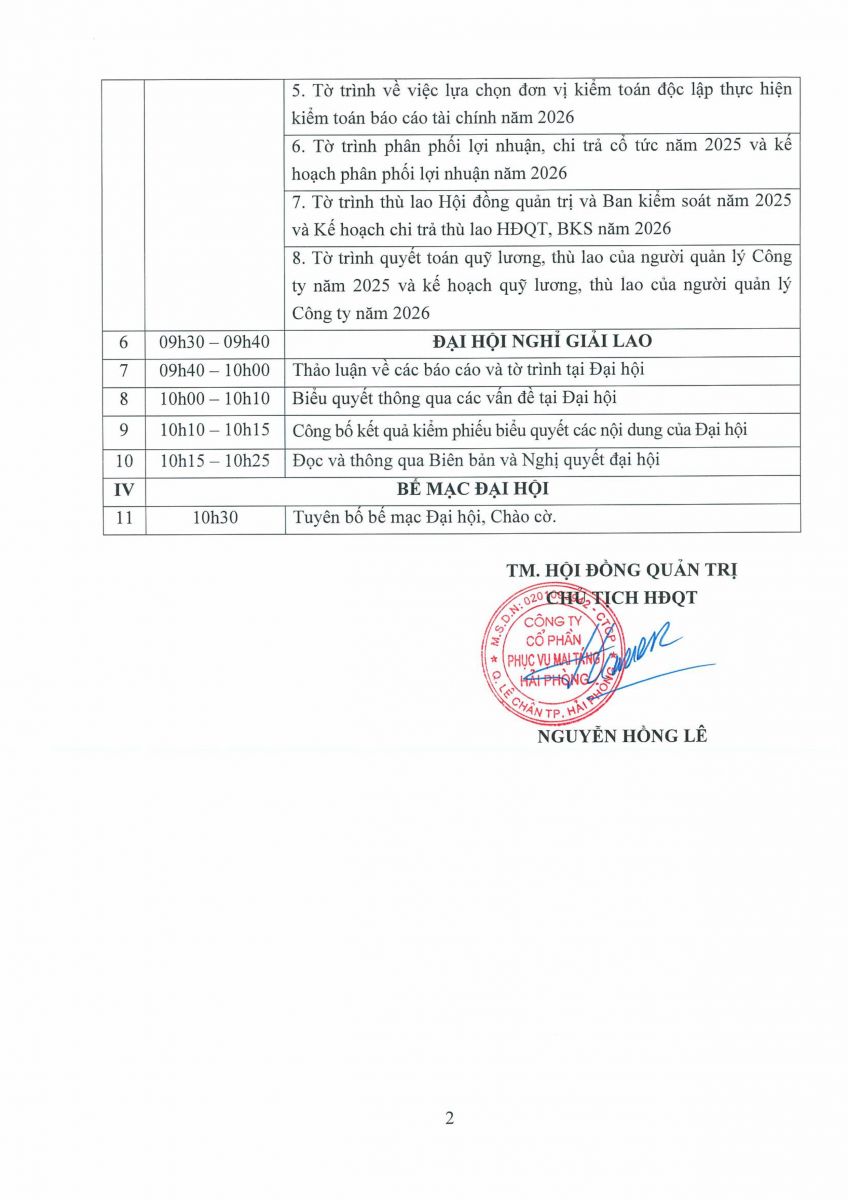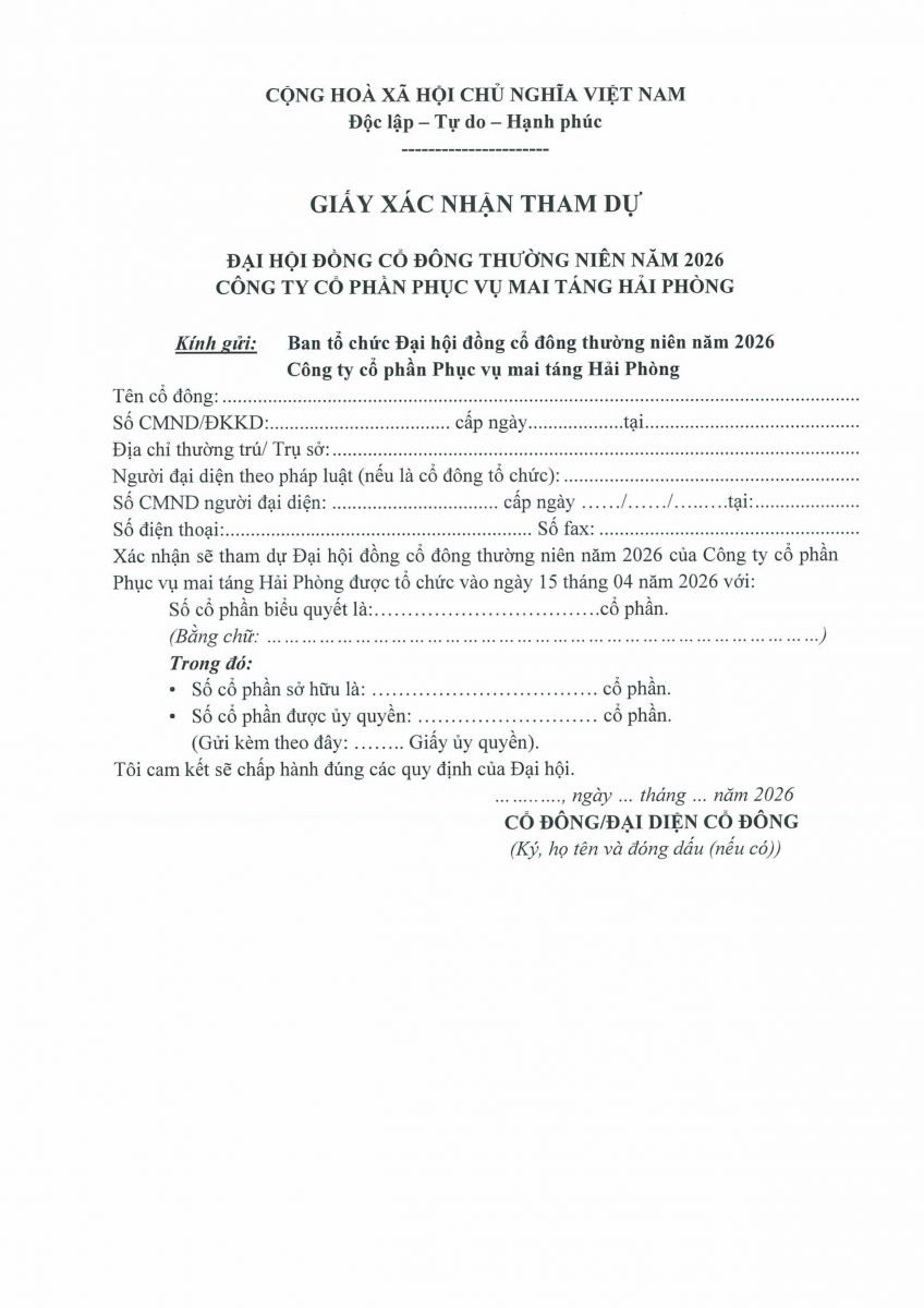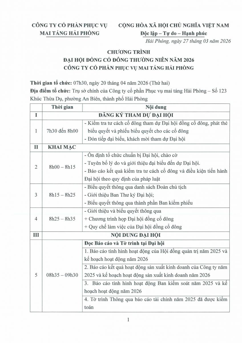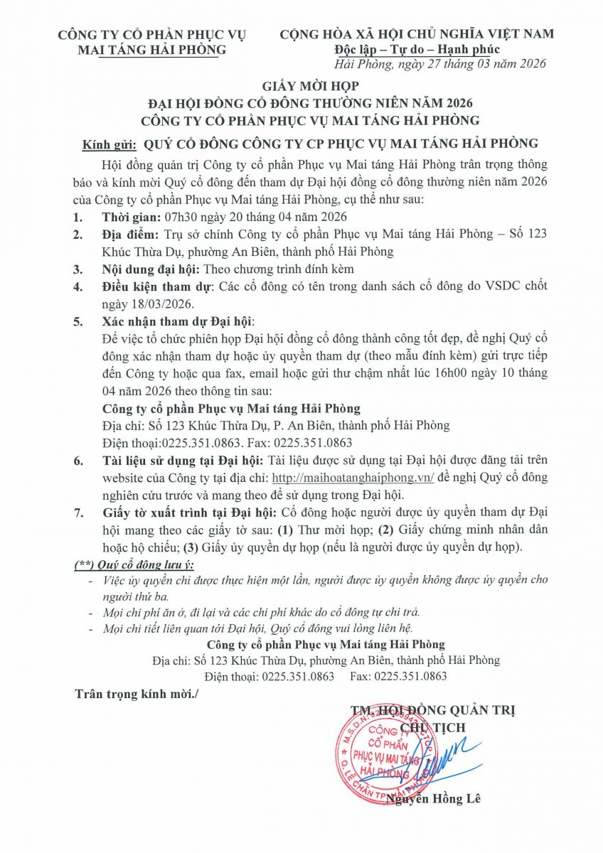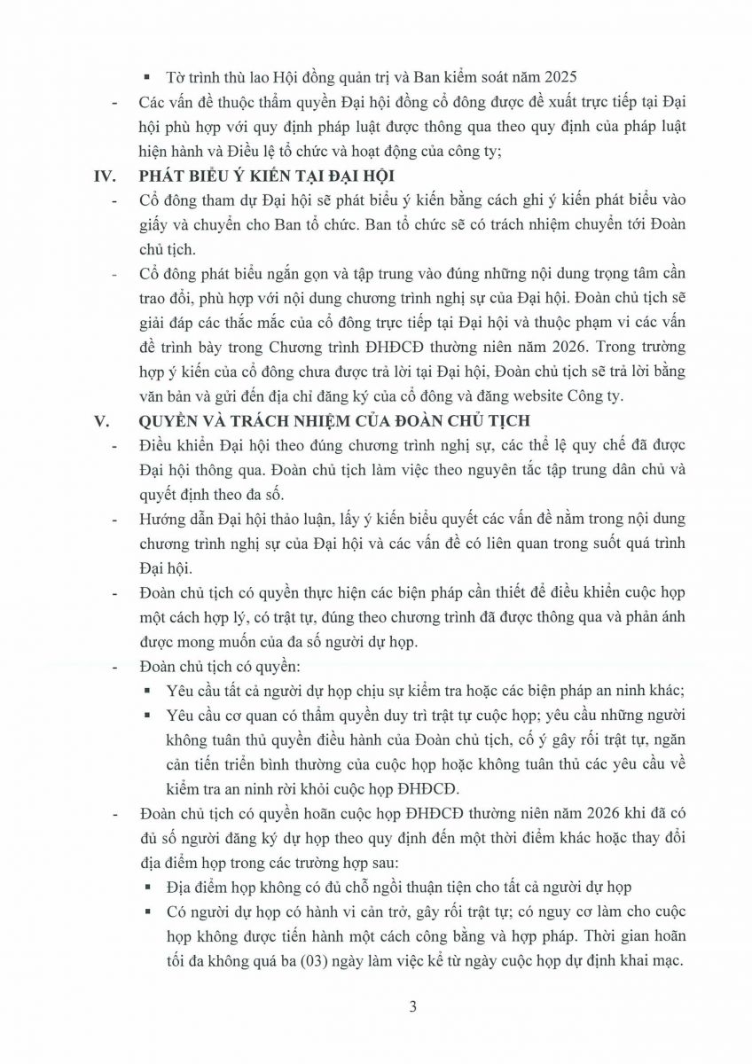 Thông tin mời họp Đại hội đồng cổ đông thường niên năm 2026 và tài liệu Đại hội