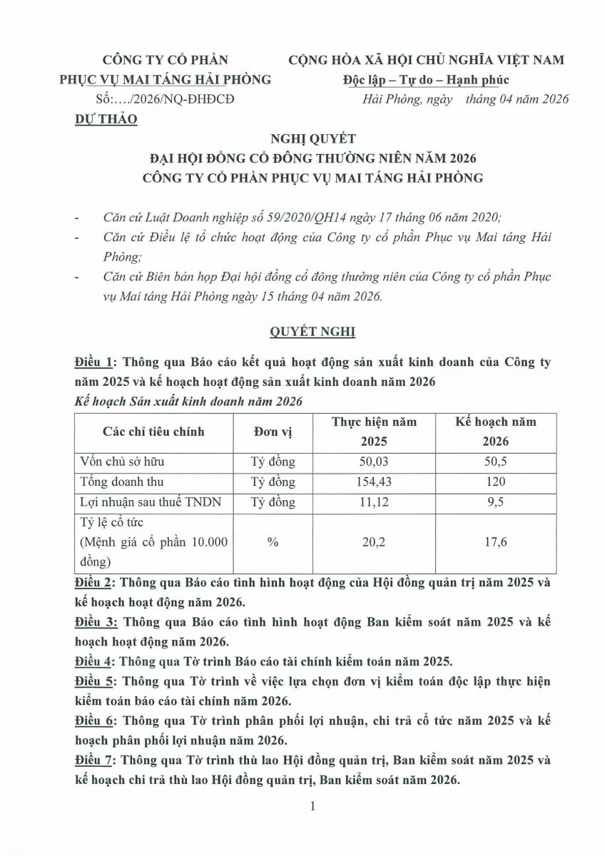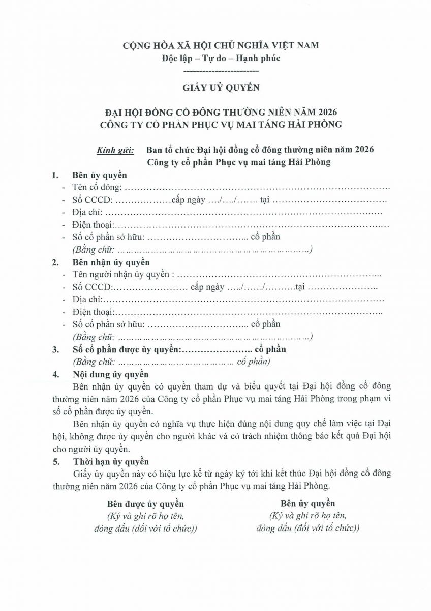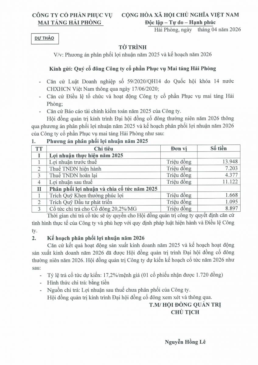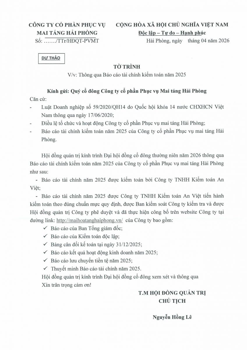 Thông tin mời họp Đại hội đồng cổ đông thường niên năm 2026 và tài liệu Đại hội