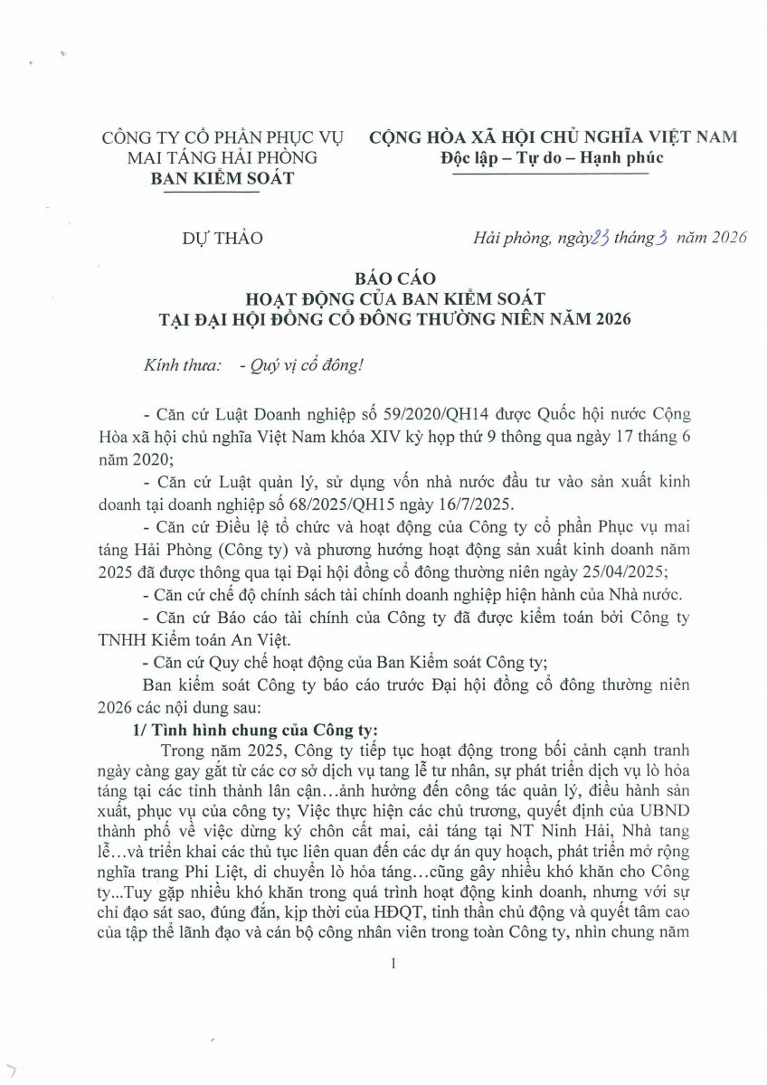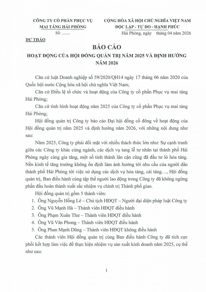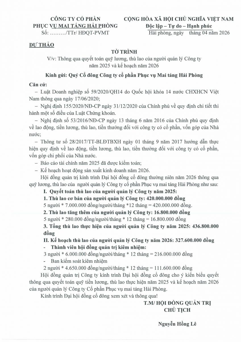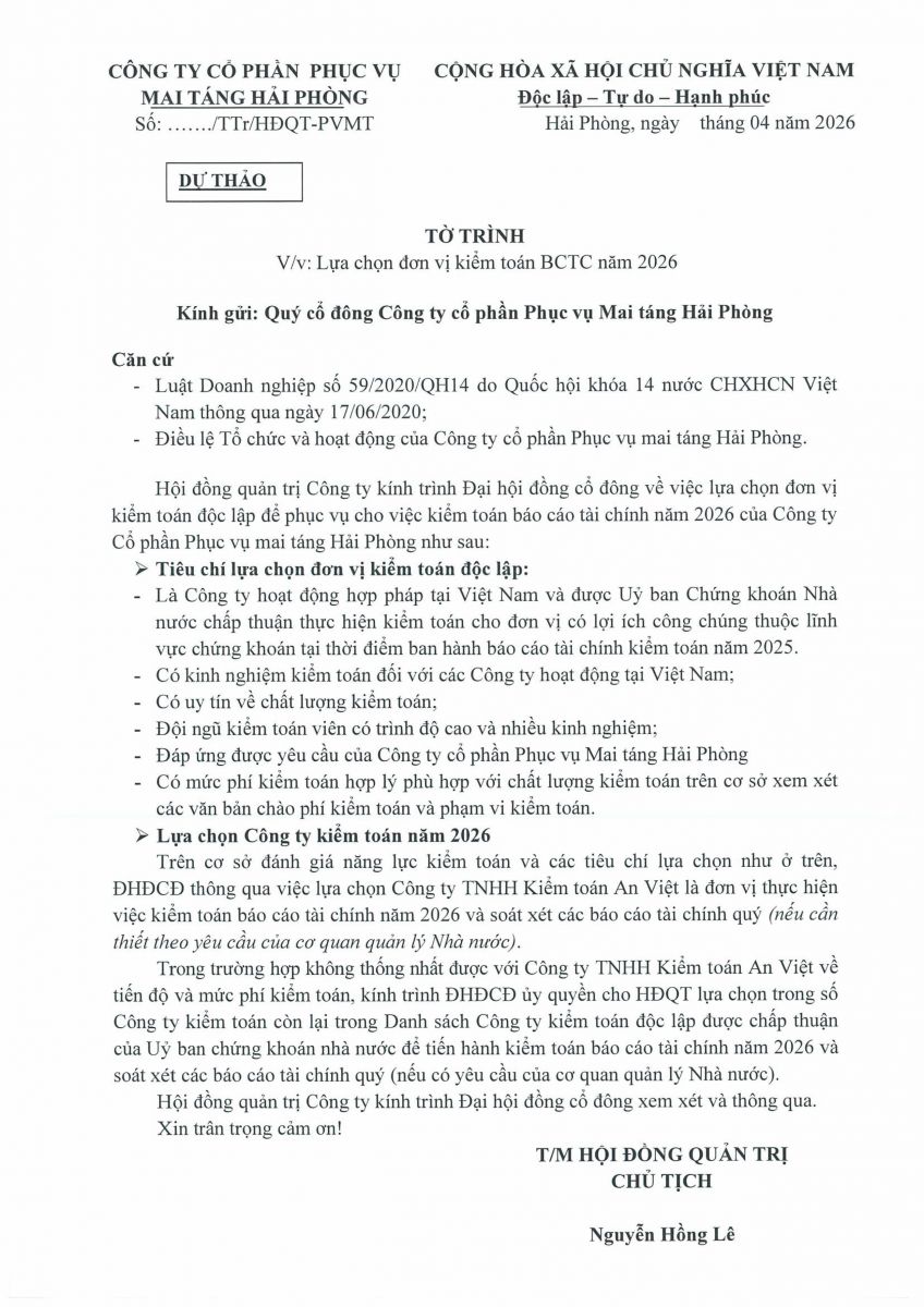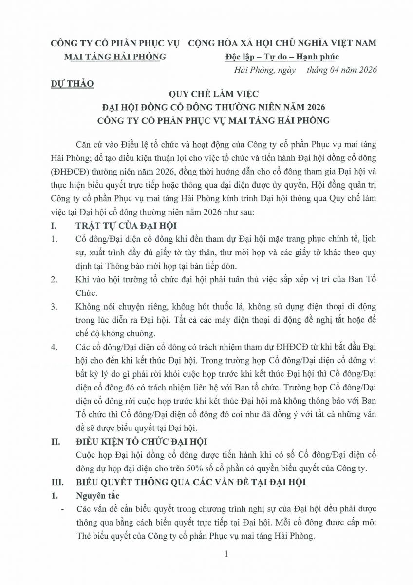 Thông tin mời họp Đại hội đồng cổ đông thường niên năm 2026 và tài liệu Đại hội